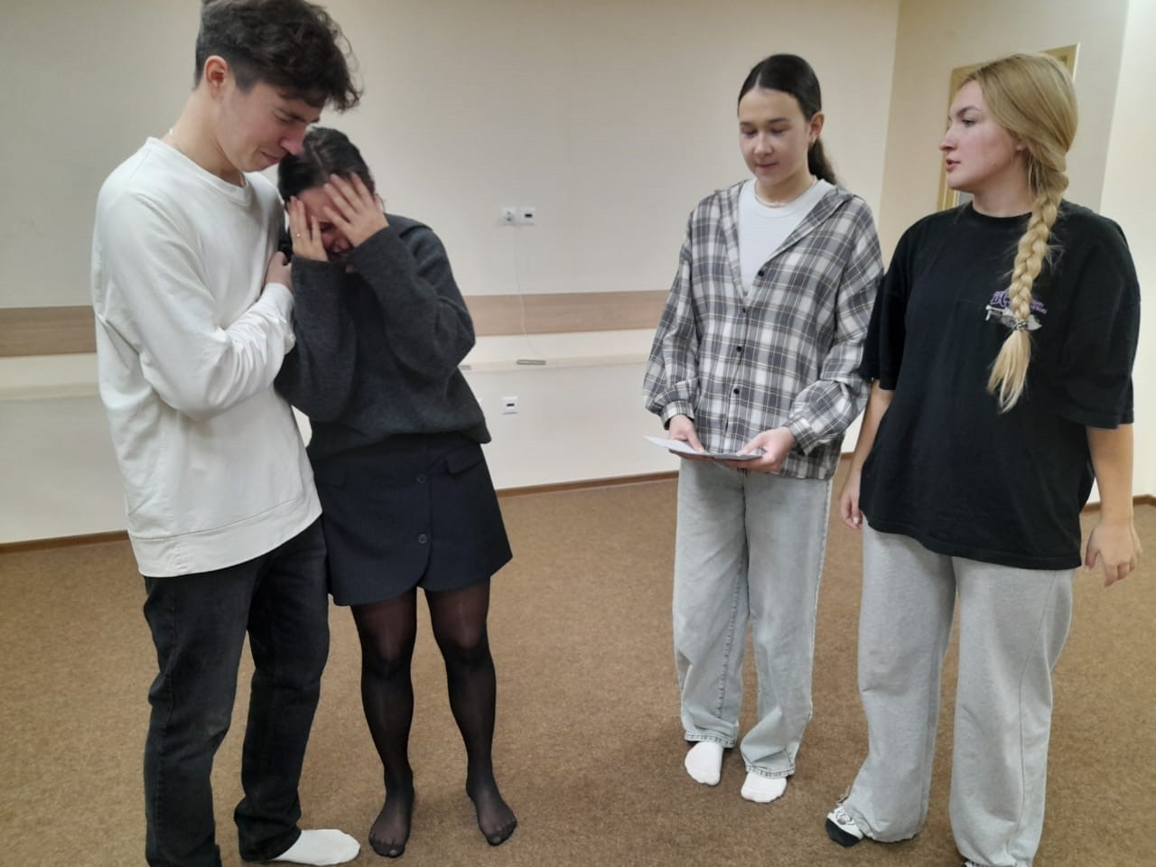 8 ноября репетиция прошла очень успешно, эффективно, на большом эмоциональном подъеме. Студенты-актеры прекрасно исполняли свои роли! Погружение в роли было полное!