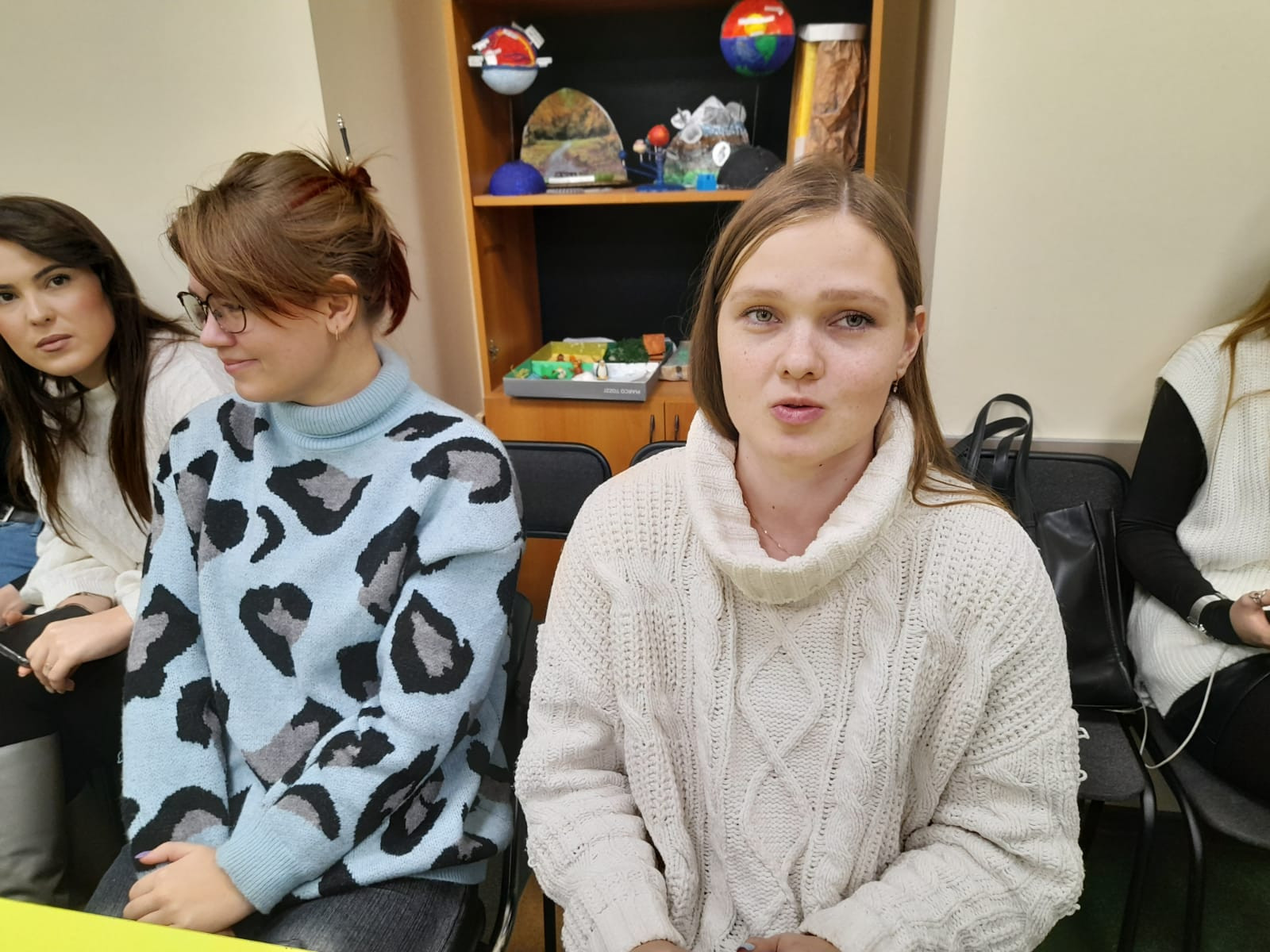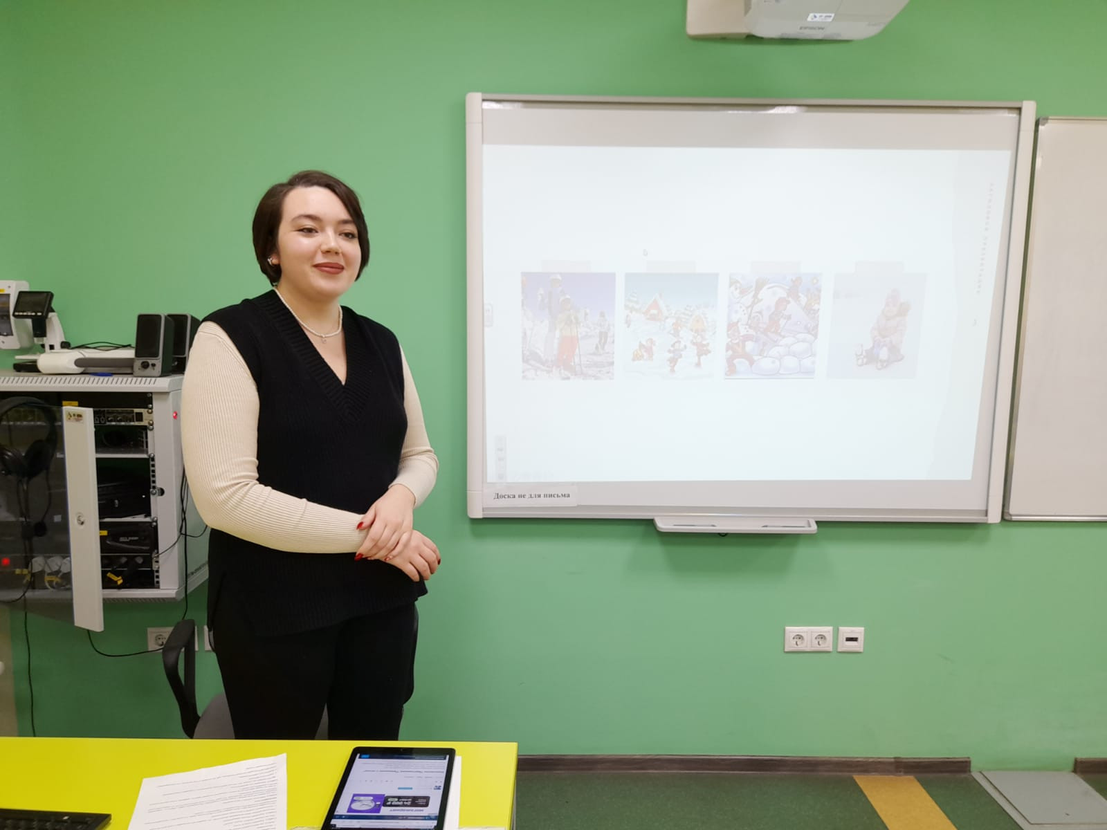 Барыкина Елена: «Сегодняшняя пара мне показалась очень интересной, было классно представить себя в роли учителя, провести урок, и получить обратную связь от преподавателя по проделанной работе».