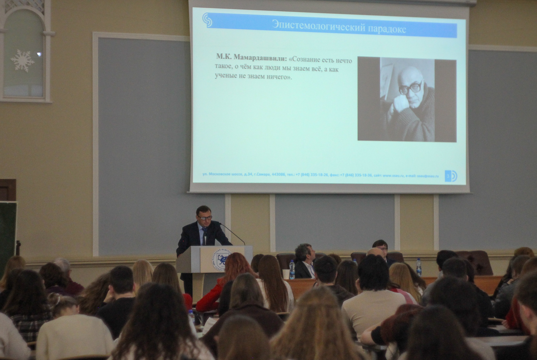 В первый день программа конференции включала как пленарные, так и секционные выступления, в которых рассматривались наиболее актуальные проблемы психологии состояний человека. Конференцию открыл заместитель директора по научной деятельности Института психологии и образования КФУ Шеймарданов Шамиль Фатович и пожелал продуктивной работы всем участникам конференции. Далее слово было предоставлено заведующему кафедрой общей психологии Устину Павлу Николаевичу, отметившему богатые традиции проведения Зимней школы состояний в Казани. Пленарную сессию докладов, посвященную теоретическим проблемам психических состояний, открыл научный руководитель Школы психологии состояний, доктор психологических наук, профессор Прохоров Александр Октябринович (Казань), раскрыв регуляторный аспект динамики психических состояний субъекта. Следующий доклад профессора Агафонова Андрея Юрьевича (Самара) был посвящен феноменальным состояниям и механизмам сознания. В свою очередь, профессор Фахрутдинова Лилия Раифовна (Казань) рассказала слушателям о категории переживании и Эго-психологии в практической психологии. Далее слово было предоставлено гостям из Нижнего Новгорода Мамоновой Елене Борисовне и Власовой Анне Сергеевне, которые рассказали участникам конференции об эмпатии в контексте коммуникативных состояний у студентов в конфликтных ситуациях. Аспирант кафедры общей психологии Макарчева Анастасия Владимировна (Казань) поделилась результатами своего диссертационного исследования, посвященного ситуативной регуляции психических состояний студентов в учебной деятельности. Завершал пленарную часть конференции доклад Шестовой Марии Александровны (Москва), в котором автор рассказал о состоянии потока в структуре эстетического опыта искусства новых медиа у старших подростков.