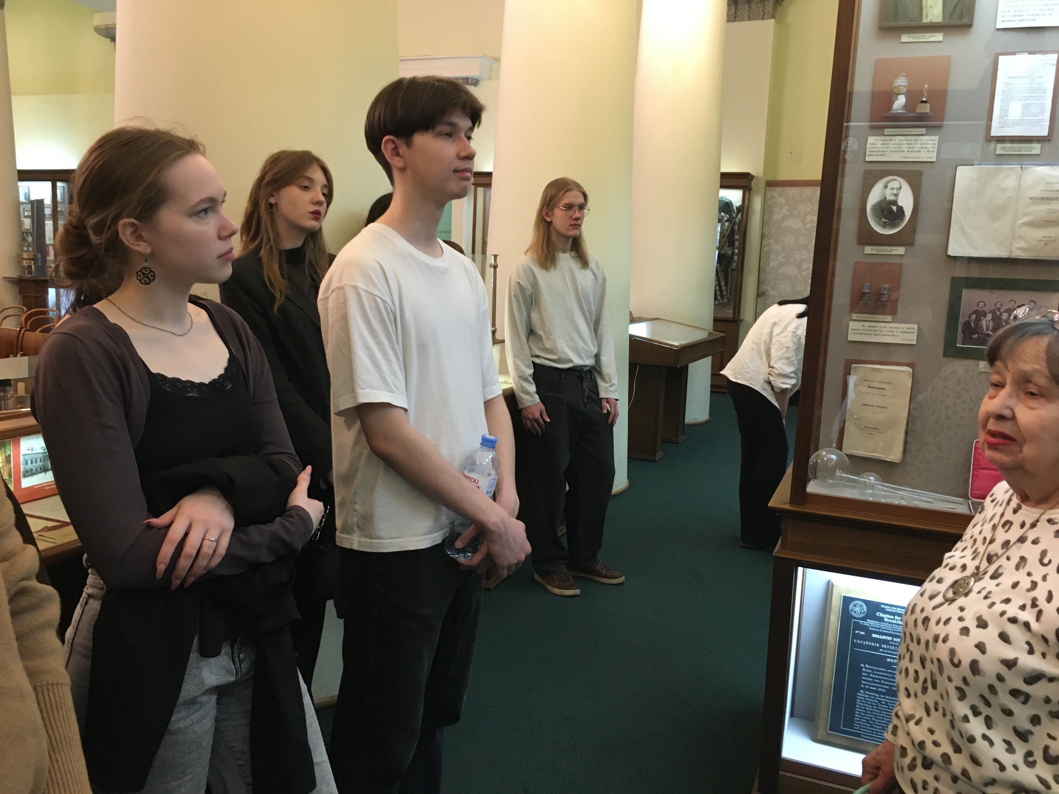 В мемориальной Ленинской аудитории они посидели за партами студентов XIX века и оценили удобство и комфортность. Экскурсовод рассказала им, что гигиенический стандарт старинной учебной мебели был высоко оценен современными медиками-ортопедами,побывавшими в этой аудитории. Студенты XXI века позавидовали студентам XIX века.За такими партами действительно можно без напряжения прослушать несколько лекций! Они сокрушались о том, что современная мебель в аудиториях совсем непохожа на парты XXI века. От долгого сидения за обычными письменными столами и плоскими партами портится осанка и зрение, возникают и другие проблемы со здоровьем. По признанию студентов, эта часть экскурсии особенно им запомнилась и вызвала много эмоций. На выходе из музея они заинтересовались экспонатами выставки новых поступлений, открывшейся буквально накануне. Время экскурсии, насыщенные новой информацией, пролетело незаметно! Впечатления от посещения лучшего вузовского музея России надолго останется в памяти студентов, и, возможно, они еще не раз захотят прийти сюда и на новые выставки, и на значимые мероприятия.