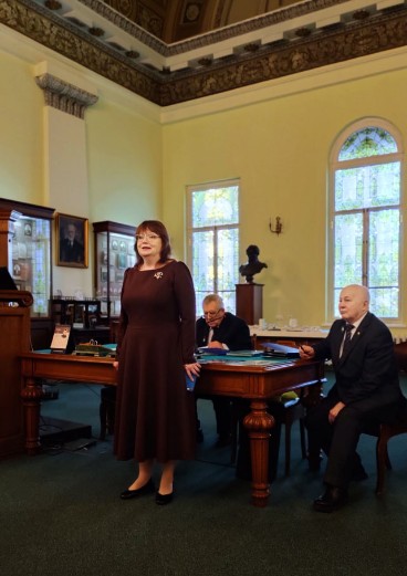 С приветственным словом выступила директор Дирекции музеев Светлана Фролова с приглашением на культурные мероприятия: «Дорогие друзья, очень приятно, что ваше мероприятие проходит в стенах Музея истории Казанского университета. Наш музей находится в самом сердце главного здания и является самым красивым помещением. Всего у нас 12 музеев и мы ждем вас, членов ваших семей посещать наши экскурсии. Спектр различных экскурсий удовлетворит самого взыскательного посетителя, есть много мероприятий и для маленьких граждан».