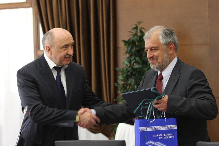 Вчера, 23 апреля, Казанский университет посетила делегация Софийского университета имени святого Климента Охридского в составе ректора, профессора И.Илчева и советника Президента Республики Болгария П.Кынева.