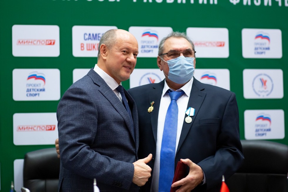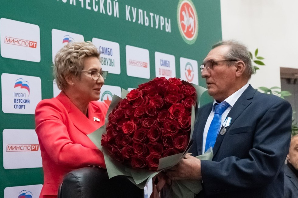 Во время мероприятия юбиляру были вручены почетный знак «За заслуги в развитии физической культуры и спорта Республики Татарстан», памятная медаль физкультурно-спортивного общества «Динамо» РТ и подарки.