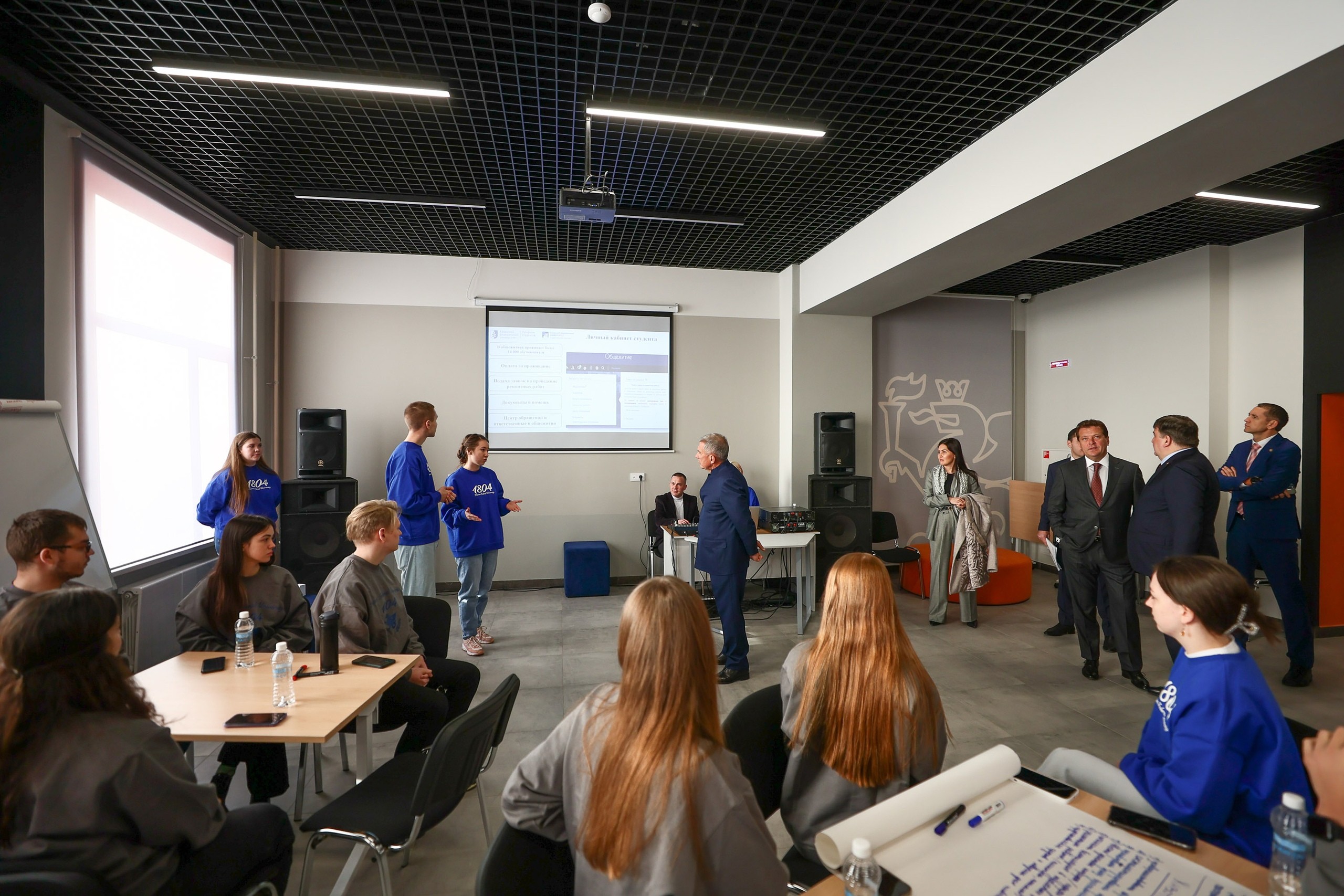 Объект посетил Раис Республики Татарстан Рустам Минниханов. В сопровождении заместителя министра науки и высшего образования РФ Айрата Гатиятова, ректора КФУ Ленара Сафина и других официальных лиц он осмотрел жилые комнаты и места общего пользования, актовый и читальный залы, специально обустроенные комнаты для студентов с ОВЗ и холл предлифтового пространства, который успешно может использоваться для организации воспитательной работы и досуговой деятельности.