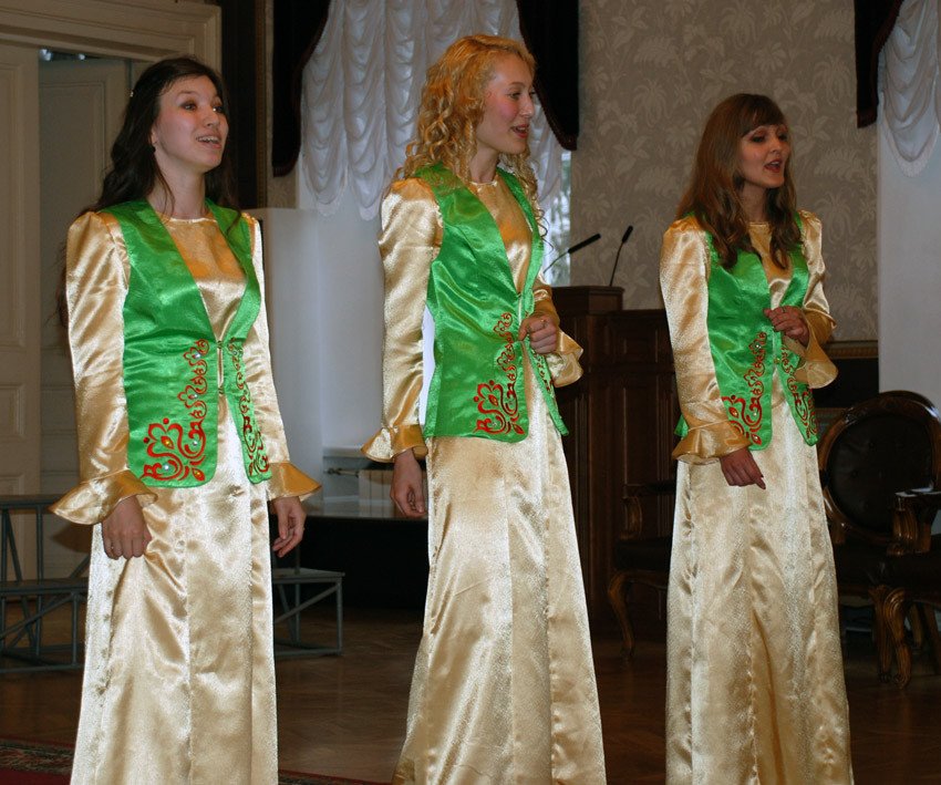 Из открытых окон известного своей прекрасной акустикой университетского Актового зала льется татарская песня.