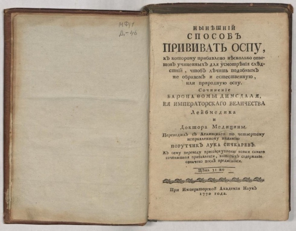Как была сделана прививка высочайшей пациентке и как протекала ее болезнь, Димсдейл рассказывает в своих воспоминаниях подробным языком амбулаторной карты. Четвертое издание его труда "Нынешний способ прививания оспы..." увидело свет в Санкт-Петербурге в 1870 году в русском переводе "порутчика Луки Сичкарева" и хранится сейчас в фондах Государственного исторического музея.