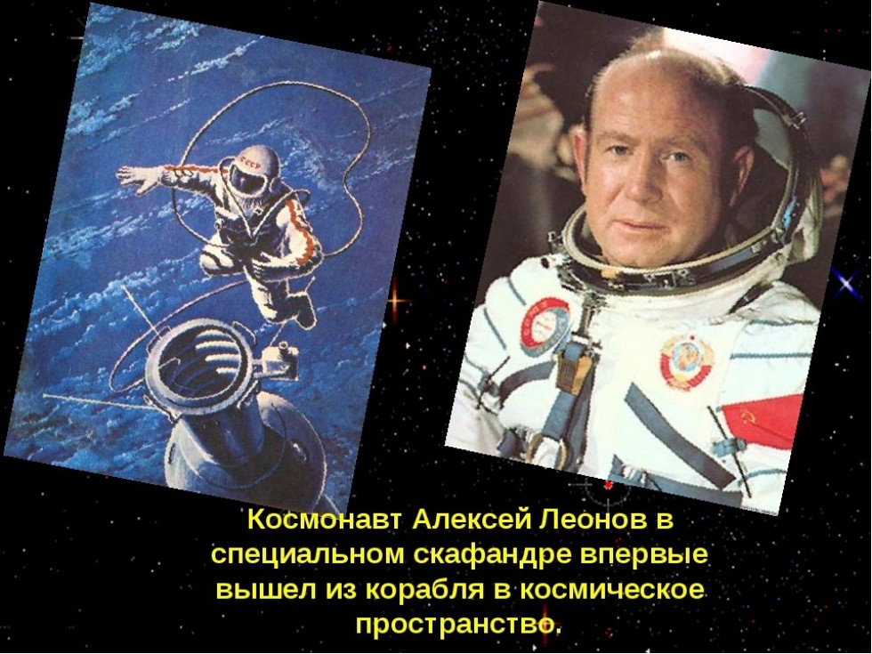 Свой первый полет на орбиту Леонов совершил в марте 1965 года вместе с Павлом Беляевым на корабле "Восход-2". 18 марта состоялся его выход в космическое пространство. Он длился 12 минут, за это время космонавт удалился от корабля на пять метров. Посадка на Землю проходила в ручном режиме, и эвакуировать экипаж с места посадки в лесу удалось лишь спустя двое суток.