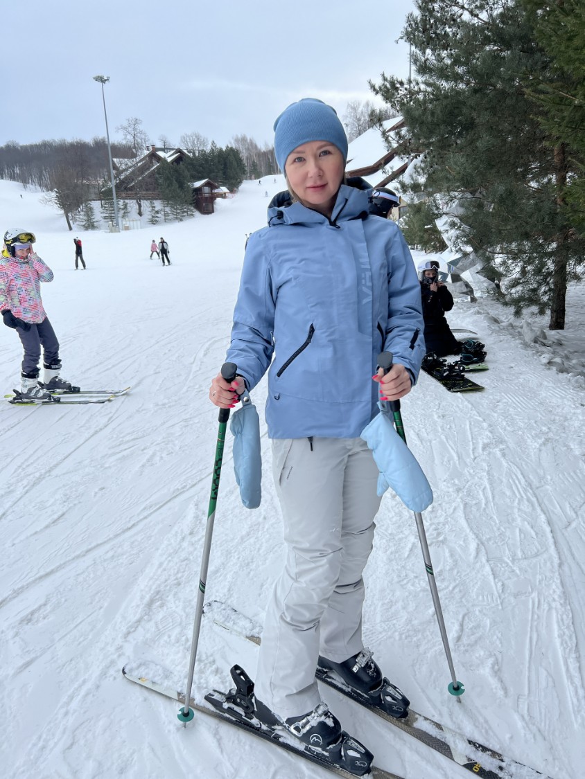 У меня любительское отношение – фитнес-зал, йога, горные лыжи. Причем, встала на горные лыжи вместе с дочерью. Такой вид спорта мне по душе.